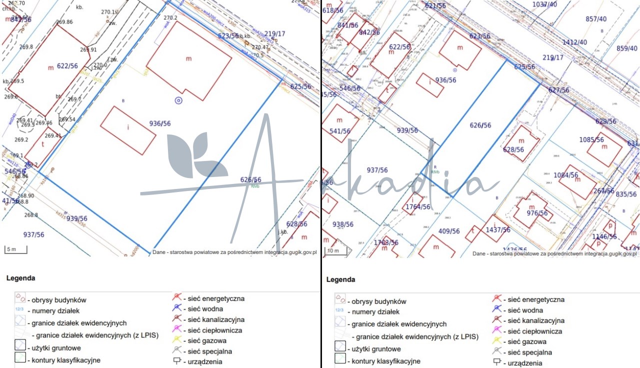 Działka 626/56 (1121 m2): Działka o długości 62m oraz szerokości 18m(front), stanowiąca doskonałe zaplecze dla terenu frontowego (np. pod parking, ogród lub dodatkową zabudowę usługową).