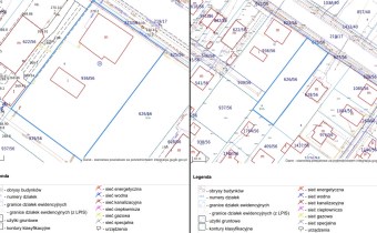 Działka 936/56 (1412 m2): Szeroki front (30m) oraz 47m długości, teren sklasyfikowany jako B (mieszkaniowy). Na działce znajduje się solidny, stary dom z cegły oraz budynek gospodarczy. Budynki idealnie nadają się do adaptacji na biuro, klinikę, gastronomię lub do rozbiórki pod nową inwestycję.